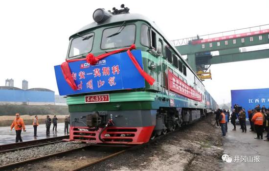 12月26日,我市在吉安火車站南站舉行“井岡山號”中歐班列(吉安—莫斯科)首發(fā)儀式。“嗚……”上午9時28分,隨著火車汽笛聲響起,吉安至莫斯科貨運列車緩緩向前、順利開行。